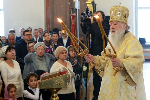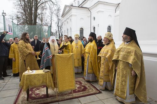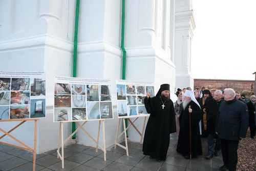 Затем митрополит Ювеналий обратился к верующим с архипастырским словом, в котором также подчеркнул важность реставрации национальных святынь Церкви, иницируемой Президентом России  Владимиром Путиным: «В нашей Московской области широким фронтом, можно сказать, идет реставрационная политика и работа на всех просторах необъятной нашей епархии. Да и там, где сегодня моя резиденция, осуществляется историческая реставрация Новодевичьего монастыря, которая столетиями не осуществлялась в этой древней обители. Господь видит наши труды, слышит наши молитвы, дорогие братья и сестры, и поэтому, мы должны только Бога благодарить за то, что Он дает нам Свои великие милости через наши власти, через добрых людей, которые стараются помочь Церкви в возрождении порушенных святынь. Мне хочется с этого святого места поблагодарить всех, кто приближает восстановление этой древней славной обители».