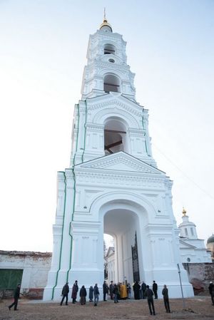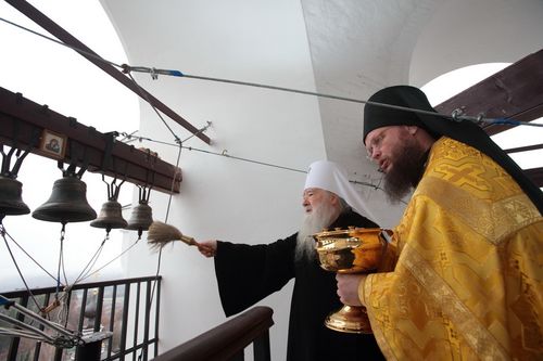 После награждения Владыка Ювеналий совершил чин освящения колокольни, которая была полностью восстановлена в своем первозданном виде. После освящения Владыка вновь обратился ко всем молящимся: «Сегодня вы являетесь участниками исторического события, дорогие братья и сестры. Когда после долгого „пленения“ обитель вернулась снова Церкви Христовой, и мы начали ее восстановление. И вы сегодня сомолитвеники наши, участники этого торжества. Пусть эта обитель всегда будет для вас местом молитвы, утешения, чтобы Господь во время посещения храмов ее, вашей молитвы исполнял все ваши прошения. Пусть Господь вас всех хранит на многая и благая лета! С праздником!»