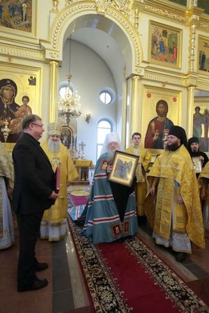 поблагодарили его за это. Митрополит Ювеналий, вручая икону, сказал: