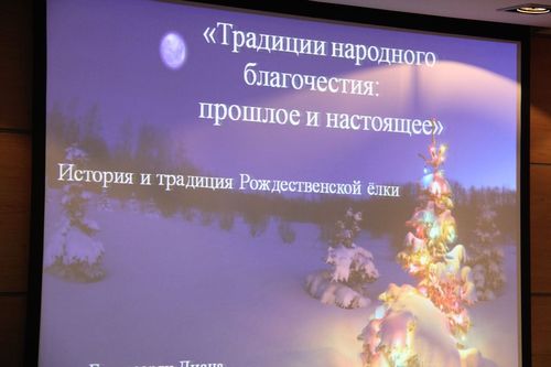 Немало нового и интересного собравшиеся почерпнули из выступления студента В.А. Тушминцева "Образ финиковой пальмы в христианском искусстве". Колоритными и эмоциональными были выступления студенток Д.Х. Багдасарян "История и традиция рождественской ёлки", Н.А. Матюшенко "Происхождение, символизм и дизайн ёлочных украшений" и Е.А. Шевелевой "Святки и Масленица в народных традициях России и церковное отношение к ним".
