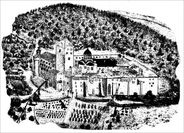 Именно в русской святогорской обители начал святой Савва свой монашеский и первосвятительский путь, приняв постриг в 1187 году. Одно из его Житий рассказывает, что Стефан Неманя послал на Афон в погоню за бежавшим сыном своих людей, и рисует весьма драматическую сцену пострижения: