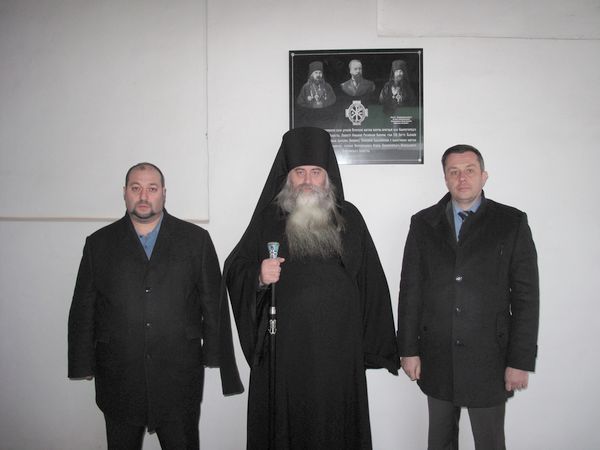 Торжественное освящение памятной мемориальной мраморной доски святой водой совершил наместник Печерского монастыря архимандрит Тихон (Затекин).