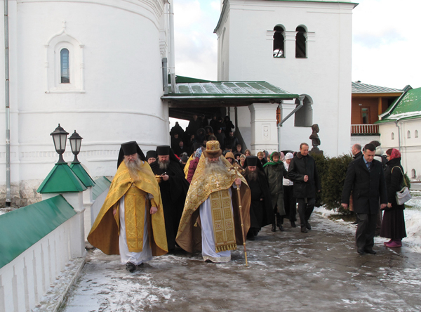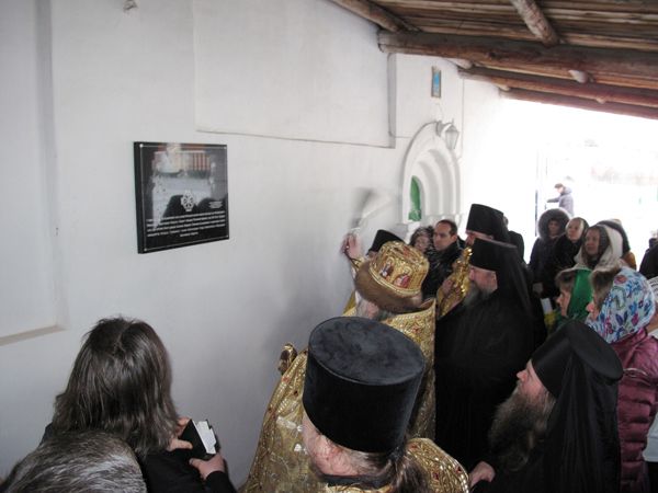 Церемония освящения мемориальной доски состоялась после Божественной литургии в монастырской Успенской церкви, откуда по крытой галерее почетные гости, многочисленные прихожане монастыря и паломники проследовали к величественному Вознесенскому собору, на стене которого установлена памятная доска.