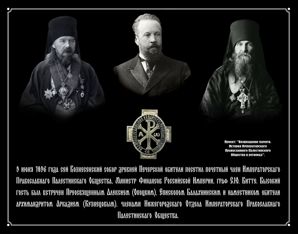 27 декабря 2015 года в Нижегородском Вознесенском Печерском мужском монастыре была установлена и торжественно освящена мемориальная мраморная доска министру финансов Российской Империи, почетному члену Императорского Православного Палестинского Общества графу Сергею Юльевичу Витте. В качестве главного финансиста страны граф помогал проектам Палестинского Общества на Святой Земле, в частности в 1899 году содействовал выделению ИППО ежегодного пособия в 30 тысяч рублей.
