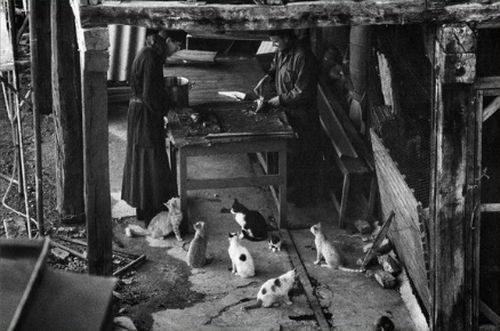 В объектив Александра Китаева часто попадали афонские кошки: "Кошек на Афоне много, и их там очень ценят, поскольку они ловят не только мышей, но и змей: откусывают им головы, но не едят. Кошки здесь особой породы - стройные, длинномордые. Кстати, на Афоне положено ходить с посохом, и сначала я думал, что ради благообразного вида, а оказалось - из чисто практических соображений: постукивание по земле отгоняет змей".