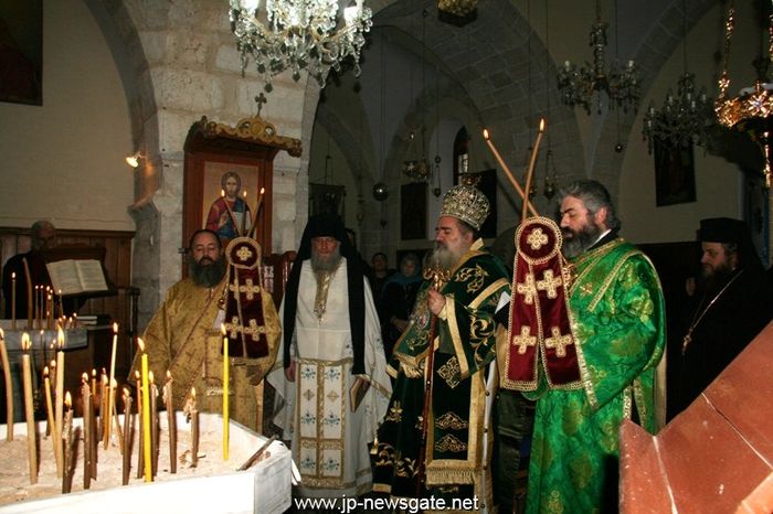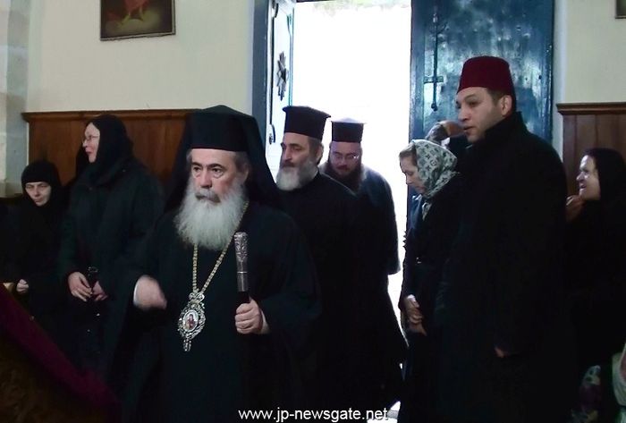 Во время Божественной литургии в часовню пришел для поклонения Патриарх Иерусалимский Феофил с отцами святогробцами.