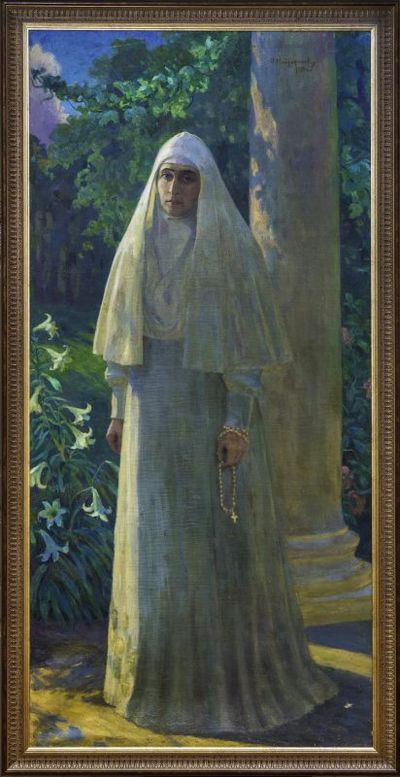 Одна из находок выставки - «Портрет монахини» из Объединённого государственного литературного музея И. С. Тургенева в Орле. Как рассказала директор Вера Ефремова, музей когда-то купил картину у художника Ивана Митрофанова, ученика К. Юона. Тот называл её «моя Лиза», сохранил в Великую Отечественную, закопав в землю, но не называл имени той, кто изображёна на картине. По его словам, он рисовал этот портрет высокопоставленной дамы по фотографиям. Опознали «монахиню» уже после его смерти, когда фотографии Елизаветы Фёдоровны стали широко публиковаться. Эксперты считают, что портрет является копией написанного в 1912 году К. Юоном портрета великой княгини, находившегося в Елизаветинской гимназии, а после 1917 года возвращенного в мастерскую К. Юона.