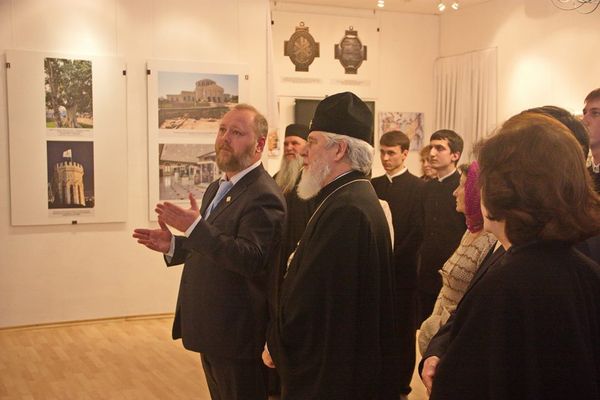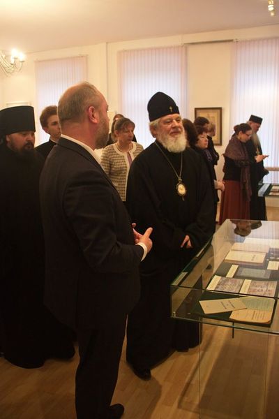 Обращаясь с приветственным словом к участникам выставки, Высокопреосвященнейший Сергий, в частности, сказал: «Сегодня мы открываем выставку, которая посвящена многогранной деятельности Императорского Православного Палестинского Общества, созданного в мае 1882 года. Главными целями Общества в те далекие годы стали поддержание Православия на Святой Земле, помощь в организации поездок русских паломников по святым местам. Сегодня Общество - это научная и благотворительная неправительственная организация, уникальная по своему значению в истории национальной культуры и русского востоковедения».