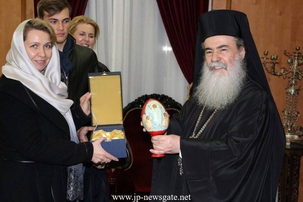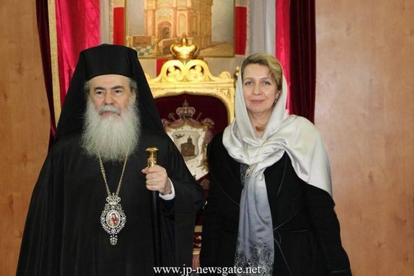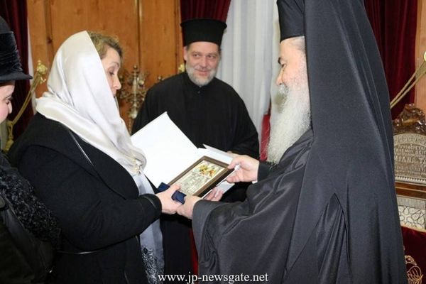 29 марта в Иерусалиме Светлану Медведеву принял Блаженнейший Патриарх Святого града Иерусалима и всей Палестины Феофил. Он выразил огромную радость по случаю ее визита и высказал слова благодарности за прекрасные связи между Иерусалимским и Московским Патриархатами и Правительством России, плодом которых явилось усиление экономической помощи со стороны России в восстановлении базилики Рождества в Вифлееме. В ходе беседы была затронута тема будущего восстановления Кувуклии Пресвятого Гроба Господня под руководством Национального политехнического университета Мецовион, высоким паломникам было предложено оказать содействие этому важному проекту.