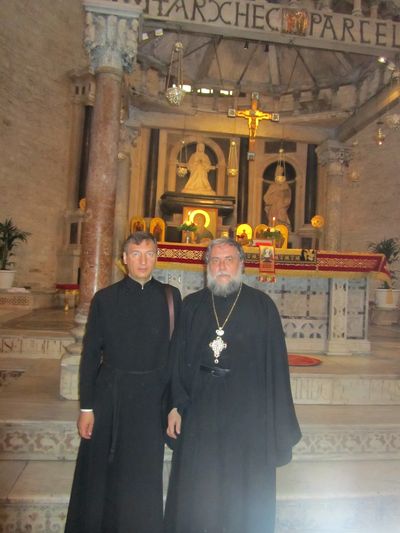 20 мая в аэропорту г. Бари официальную делегацию из России приветствовал настоятель Патриаршего подворья в честь святителя Николая протоиерей Андрей Бойцов.