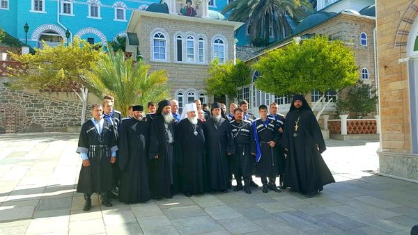Терское войсковое казачье общество сформировало группу казачьей молодежи из разных городов Ставропольского края – Михайловска, Пятигорска, Минеральных вод, Новоалександровского района и студентов Многопрофильного техникума им. казачьего генерала С.С. Николаева, которая во главе с атаманом Михайловского станичного казачьего общества Андреем Воронцовым и под духовным руководством проректора по учебной работе Ставропольской духовной семинарии игумена Алексея (Смирнова) 30 мая прибыла на Афон.