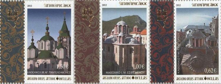 архитектуре и реликвиям афонских монастырей, природе региона. В этом году главной темой стали монастырские барельефы. Тираж каждой серии не превышает 60 тысяч полных комплектов. Марки продаются только в двух почтовых отделениях на территории Афона - в Карее, столице монашеской автономии, и в порту Дафни у подножия горы. Эти знаки почтовой оплаты действуют как для отправки внутренней, так и для международной корреспонденции.