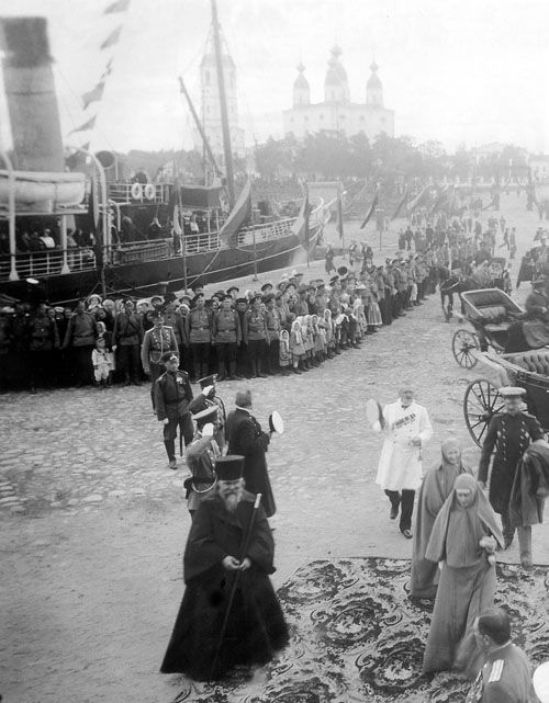 Великая княгиня Елизавета Федоровна и Владыка Нафанаил на Соборной пристани Архангельска садятся на соловецкий пароход «Вера», чтобы отправиться в Соловецкий монастырь. 24 июля 1913 г., 6 часов вечера