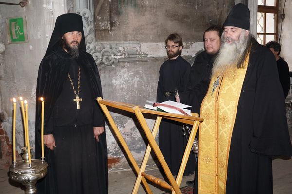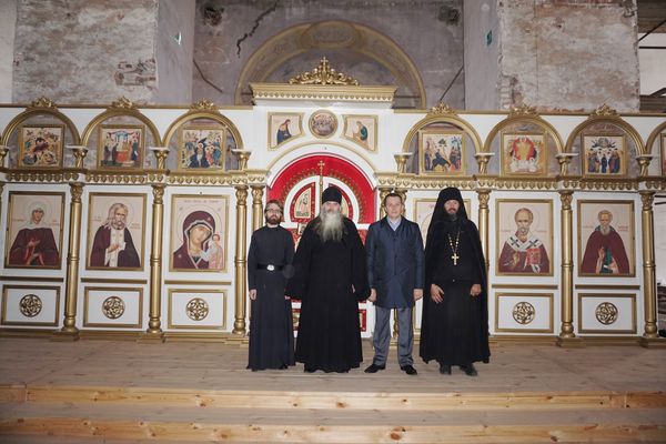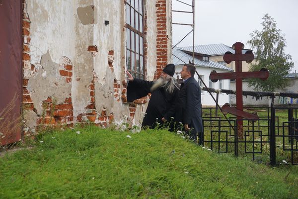 В соборе отец Тихон ознакомил Александра Николаевича с ходом реставрационных работ. В ходе осмотра обители архимандрит Тихон и Александр Николаевич Панин в рамках проекта «Возвращение памяти: история ИППО в регионах» приняли решение изготовить памятную мемориальную гранитную доску, которую планируется укрепить на стене собора в память Владыки Алексия (Соболева).