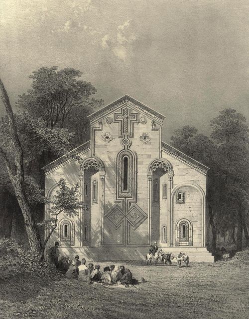 Титульный лист альбома «Живописный Кавказ». На нем изображен монастырь Гегард (Армения)