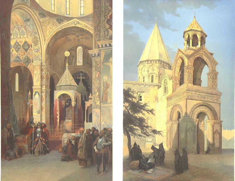 Armenie. Eglise d'Etchmeadzine (deux vues) / Армения. Эчмиадзинский монастырь (два вида)