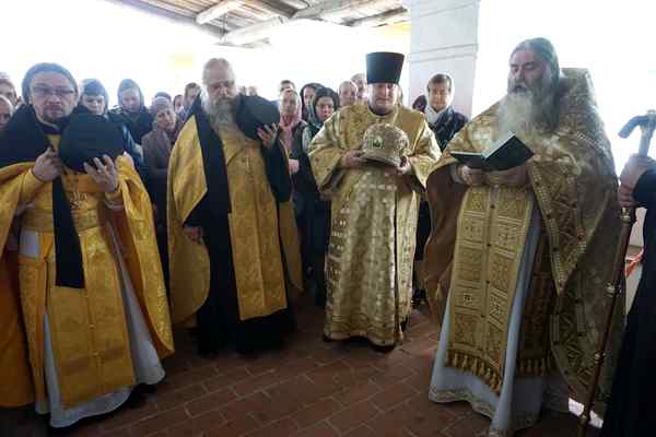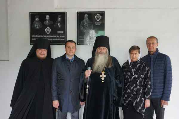 Члены ИППО архимандрит Тихон, А.Н. Панин и И.А. Малиновская торжественно сняли покрывало с памятной доски. Наместник обители архимандрит Тихон совершил освящение мемориальной мраморной доски святой водой.