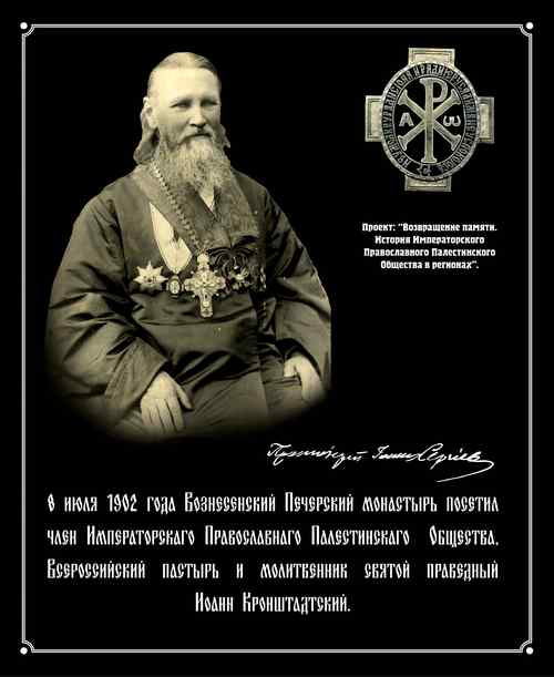 18 сентября В Нижнем Новгороде торжественно открыта и освящена мемориальная доска «всероссийскому батюшке», почетному члену Императорского Православного Палестинского Общества протоиерею Иоанну Кронштадтскому, который активно жертвовал на проекты в Святой Земле.
