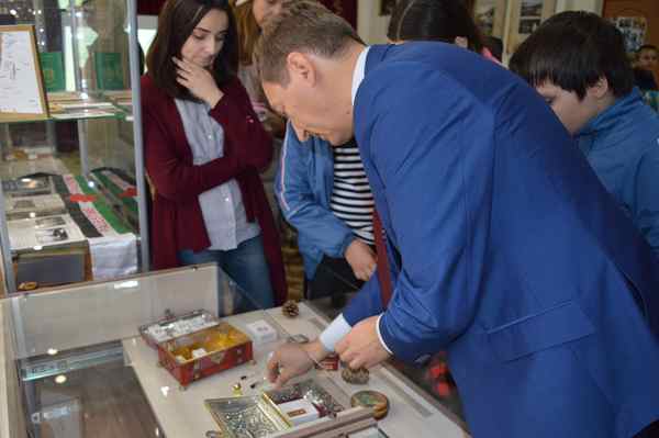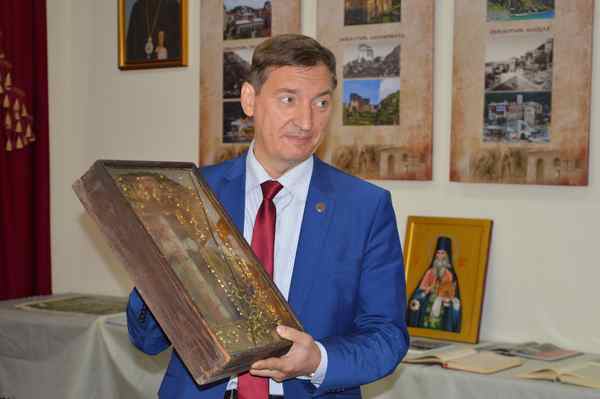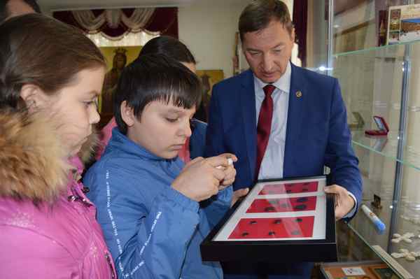 Беседу и экскурсию по выставке для них провел пресс-секретарь Шахтинской епархии, епархиальный древлехранитель, действительный член Императорского Православного Палестинского Общества, старший преподаватель кафедры «Православная культура и теология» Илья Геннадиевич Шарков.