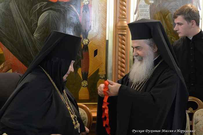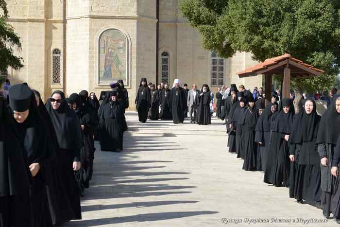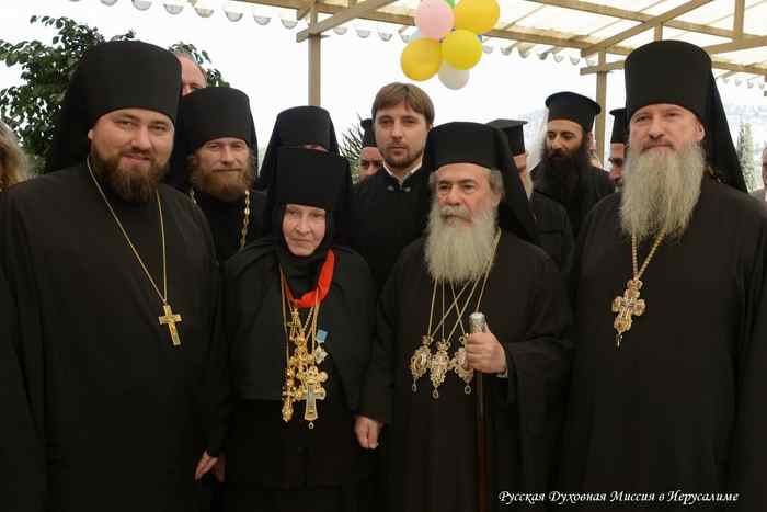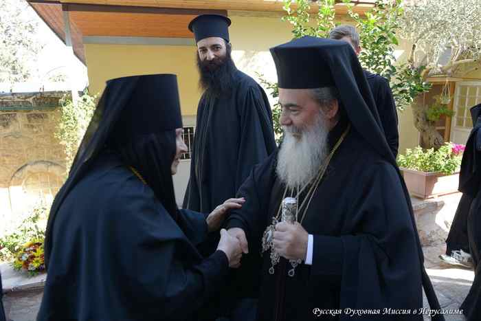 По окончании богослужения митрополиты Тамбовский Феодосий, Капитолиадский Исихий, начальник Русской Духовной миссии архимандрит Александр, клирики Миссии и духовенство из числа паломников торжественно приветствовали Патриарха Иерусалимского и всей Палестины Феофила III, прибывшего в Горненский монастырь, чтобы разделить с матушкой игуменией, паломниками и всем освященным собором радость праздника.