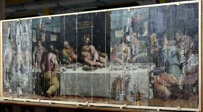 Монументальная панель Джорджо Вазари «Тайная вечеря» 16 века возвращается после многолетней реставрации в базилику Санта Кроче во Флоренции. Панель сильно пострадала во время наводнения 4 ноября 1966 года, когда множество произведений искусства было повреждено или погибло.