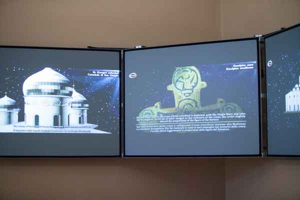 На экранах представлены двадцать пять 3D-моделей шедевров архитектуры из Италии, Ватикана и России. По словам заведующей отделом развития проекта "Русский музей: виртуальный филиал" Ольги Бабиной, центр мультимедиа впервые выходит за рамки коллекции и представляет совместный проект.