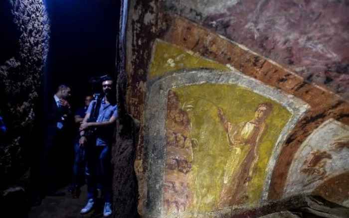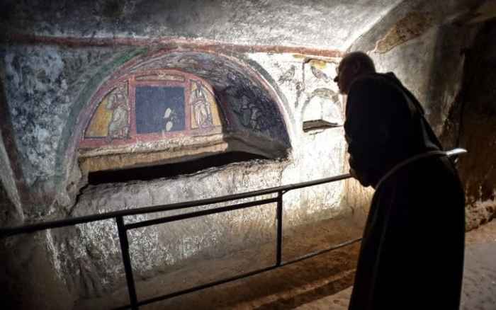 В процессе реставрации нескольких склепов в римских катакомбах св. Домициллы группа итальянских ученых обнаружила целый комплекс настенных изображений, которые до сих пор оставались недоступными из-за многовековых наслоений и копоти. Об этом сообщает Рублев.com со ссылкой на британскую газету The Telegraph.