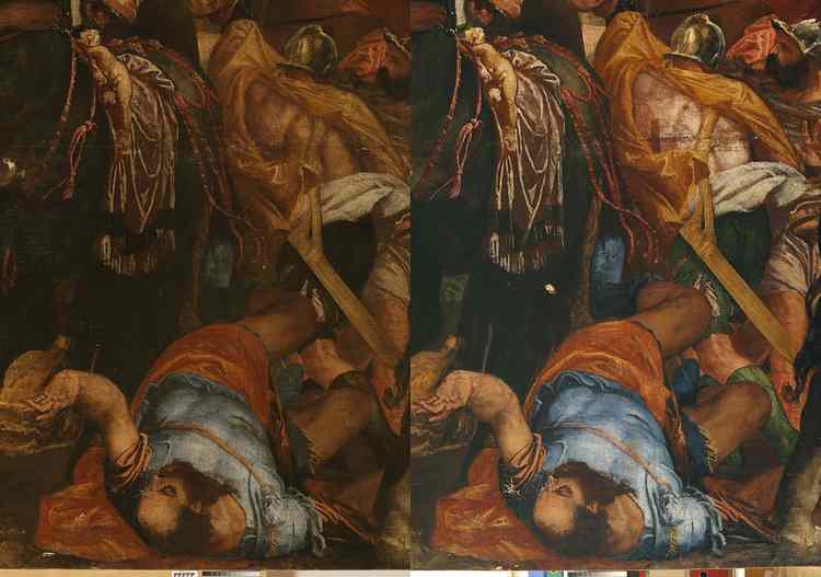 На освобожденной от разновременных лаков и записей авторской поверхности стала читаться разница фактур, оправдались и предположения об ином качестве цвета, а открывшиеся градации зеленых и синих оттенков превзошли самые смелые ожидания. Стали видны не только специалистам незаметные до реставрации детали: продолжение луча божественного света, нацелившееся в голову поверженному Савлу, сверкающие шлемы, панцири и звенья кольчуг воинов, заклубившуюся в вихре траву, листву и ветви деревьев.