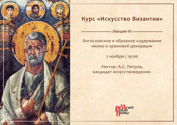 2 ноября в 19:00 Музей русской иконы приглашает на третью лекцию курса «Искусство Византии», который ведет А.С. Петров, кандидат искусствоведения.