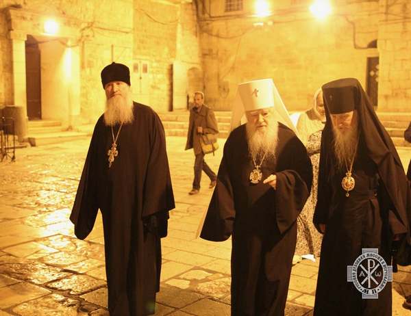 Вы, Ваше Блаженство, упомянули об историческом паломничестве, которое верные чада Русской Православной Церкви столетиями совершают в Святой град Иерусалим для поклонения Гробу Господню и святым местам. В наше время тяга паломников к святым местам даже увеличилась, я уверен, что лишь только чада нашей Церкви узнают о Вашей любви и отеческом расположении, тысячи и тысячи людей прибудут в Иерусалим, чтобы принять Ваше Первосвятительское благословение.