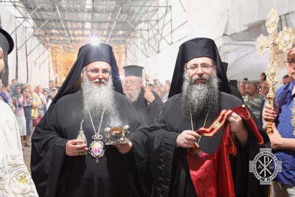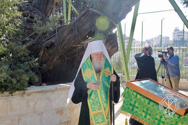 От имени Начальника Русской Духовной Миссии, от братьев-архипастырей, которые по благословению Святейшего Патриарха Кирилла находятся здесь, и от всех верных чад Русской Православной Церкви и благочестивых паломников, которые наполнили сегодня это исторический Троицкий собор, мы выражаем Вам сыновнюю горячую благодарность и просим Ваших святых молитв".
