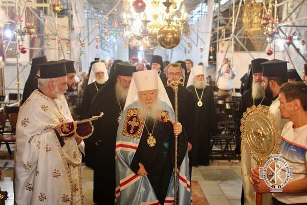 Утром 22 октября в Троицком соборе Русской духовной миссии началась торжественная Божественная литургия, которую возглавил Патриарх Иерусалима и всей Палестины Феофил III. Иерусалимский патриархат также представляли митрополит Еленопольский Иоаким, генеральный секретарь Иерусалимской Патриархии архиепископ Константинский Аристарх, святогробцы, иеромонахи и диаконы.