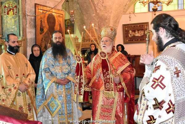 Божественную литургию возглавил митрополит Назаретский Кириак в сослужении отцов-святогробцев, Богослужебные песнопения исполнили   настоятель монастыря архимандрит о. Аристовул и монахини Патриархата.
