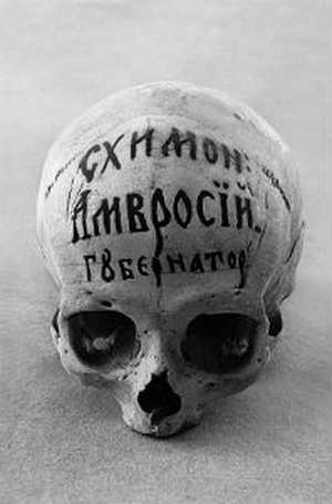 Несколько лет назад в костнице этого монастыря ученым был показан череп с надписью «Амвросий. Губернатор». Это стало толчком к большой исследовательской работе. Выяснилось, что это Александр Владимирович Болотов. Он родился 3 октября 1866 года в Санкт-Петербурге, а скончался с именем Амвросий 13 февраля 1938 года, будучи иноком знаменитой Русской обители Целителя Пантелеимона на Афоне.