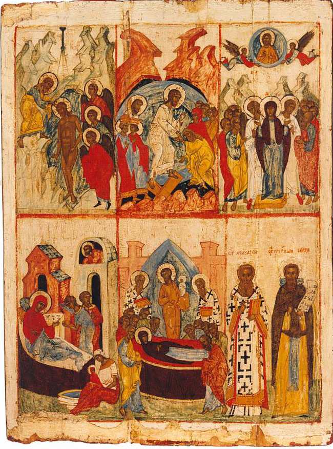 Пять праздников и святые. Вологда, конец XV — начало XVI века. Дерево,