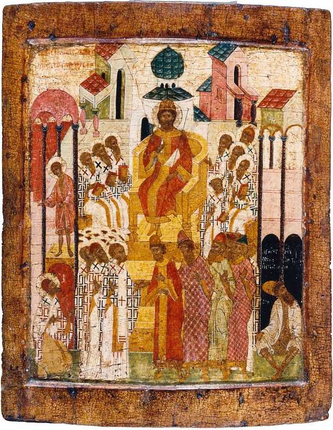 Первый Вселенский собор в Никее. Новгород (?), конец XV века. Дерево,