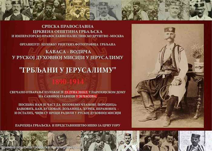 С 23 июня по 31 августа в Черногории работает фотовыставка "Грбаляне в Иерусалиме. 1890-1914", рассказывающая о жителях местечка Грбаль на службе проводниками (кавасами) в Иерусалиме в Императорском Православном Палестинском Обществе. Кавасы встречали многочисленных русских паломников в Яффе, сопровождали их до русских подворий в Иерусалиме и охраняли от грабителей многотысячные караваны паломников, посещавших святые места в Вифлееме, Назарете, на Иордане...