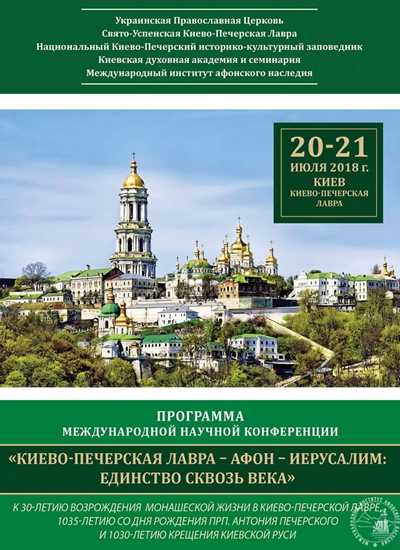 20 – 21 июля 2018 г. в Киево-Печерской Лавре  состоится международная конференция «Киево-Печерская Лавра – Афон – Иерусалим: единство сквозь века», которая приурочена к 30-летию возрождения монашеской жизни в Киево-Печерской Лавре, 1035-летию со дня рождения «отца древнерусского монашества» прп. Антония Печерского и 1030-летию Крещения Киевской Руси.