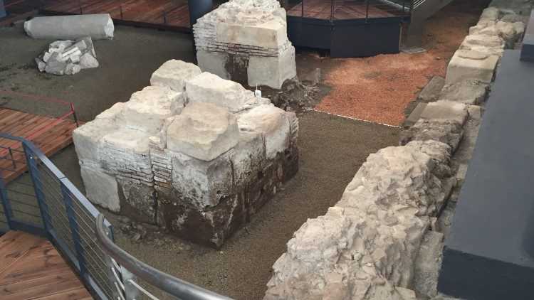 Выставленные на обозрение древние постройки представляют собой плотную вереницу зданий, которые во второй половине IX века были ограждены защитными стенами; они - ровесники городской цитадели Iohannipolis (названной в честь её основателя Папы Иоанна VIII), которая служила пристанищем для паломников и местом для монашеских обителей. Среди мраморных обломков археологи обнаружили части саркофагов, а самое древнее здание из этой зоны раскопок было построено между концом V века и началом VI: по мнению учёных, это был один из «домов для бедных», построенных Папой Римским Симмахом.
