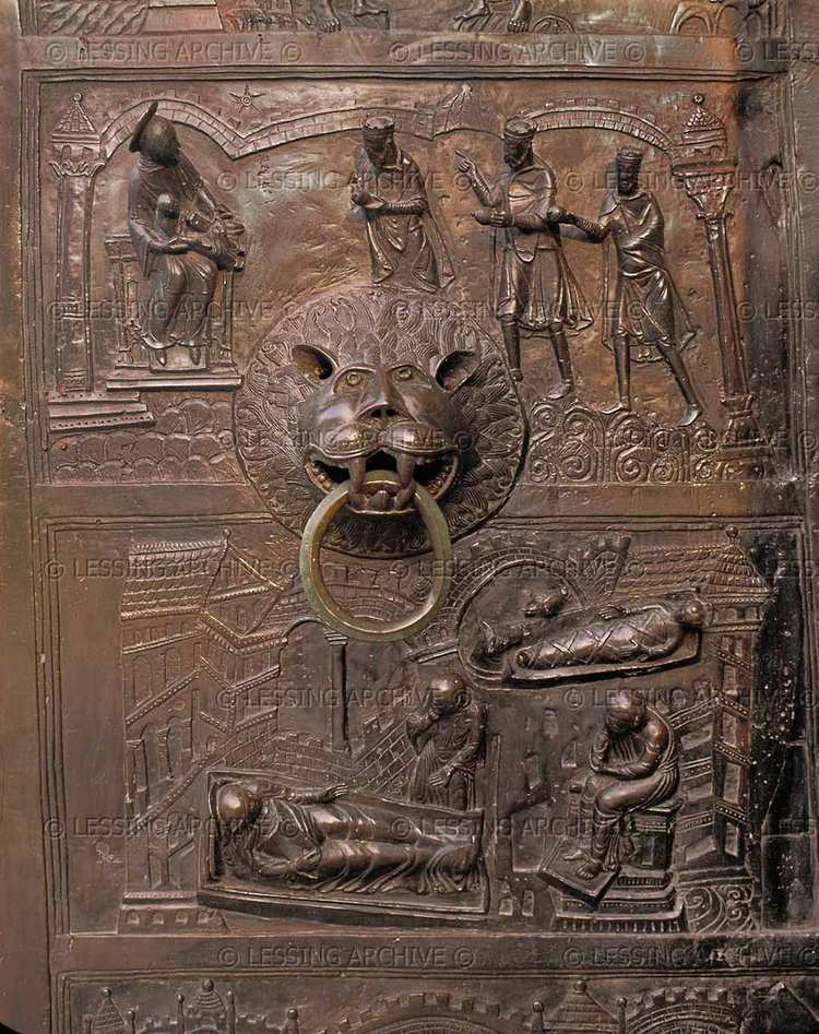 Двери епископа Бернварда (Bernwardstüren) со сценами из Ветхого и Нового Завета. 1015 г.