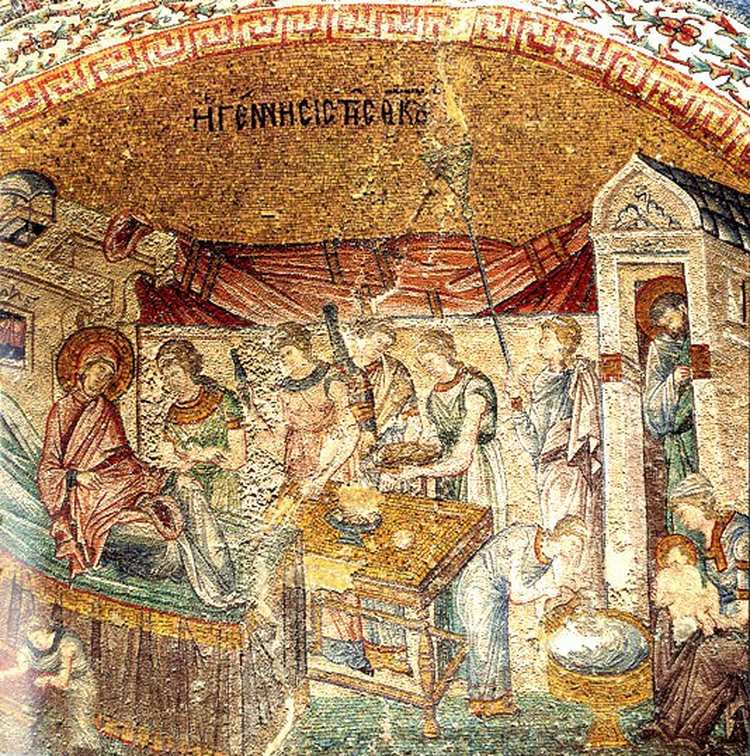 Рождество Богоматери. Мозаика  Кахрие-джами.  Ок. 1315–21 гг.