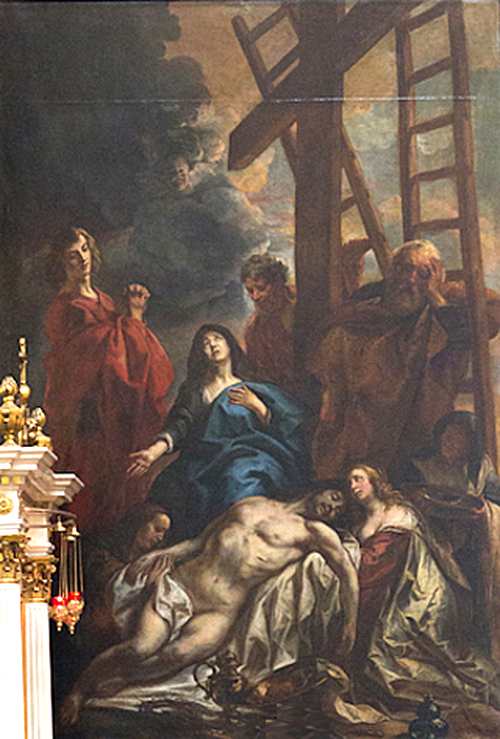 Картина Якоба Йорданса «Оплакивание Христа» в интерьере Александро-Невской лавры. cityguidespb.ru