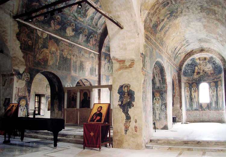 Самые ранние и ценные фрески в этом храме были написаны в 1220-х годах, предположительно греческими мастерами из Солуни. Самая известная из фресок, шедевр сербской средневековой живописи – Белый Ангел на гробе Господнем.