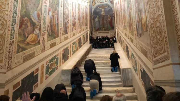 У католиков с 15 апреля идет Страстная неделя перед Пасхой, отмечаемой ими в этом году 21 апреля. Открытие Святой лестницы в первоначальном виде со стертыми веками ступенями стало важным символическим событием для верующих, отмечают наблюдатели. Традиционно верующие поднимаются по лестнице из 28 ступеней на коленях,