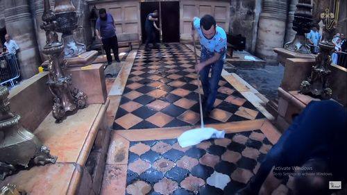 Уборку в храме Гроба Господня продемонстрировали в Интернете