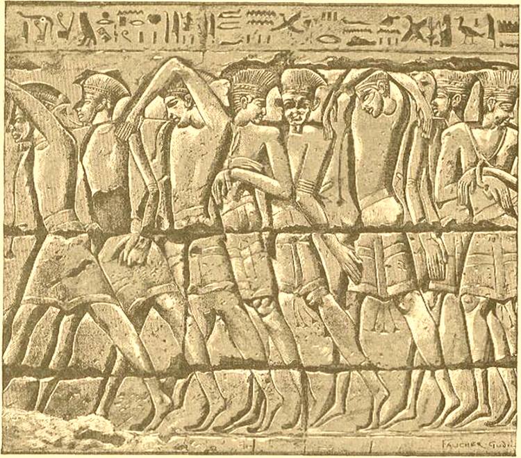 Филистимские воины, взятые в плен фараоном Рамзесом III.