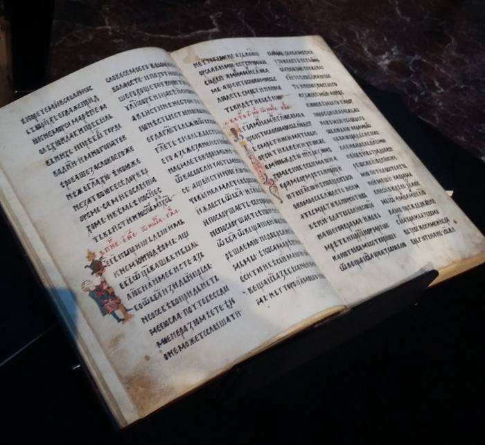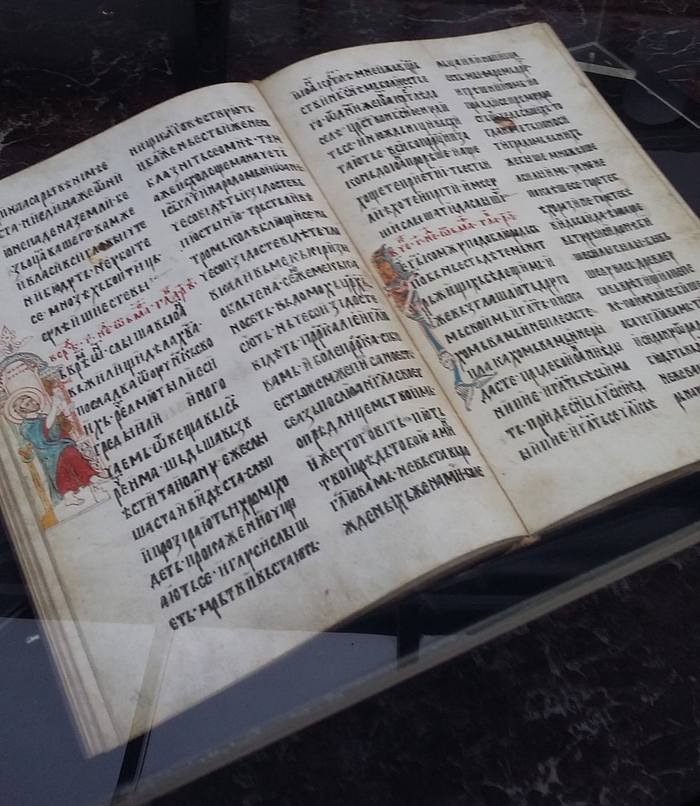 – Книги, как и народы, имеют свою судьбу, Евангелие было написано в храме Св. Петра и Павла в маленьком городе Биело-Поле. Потом оказалось в монастыре Хиландар на Афоне, и в конце XIX века, во время визита короля Сербии Александра Обреновича, братья подарили ему книгу. Во время Первой мировой войны, когда Сербия прошла ужасную Голгофу, книга вместе с правительством и нашей армией ехала до острова Корфу, а в конце войны вернулась в Сербию.