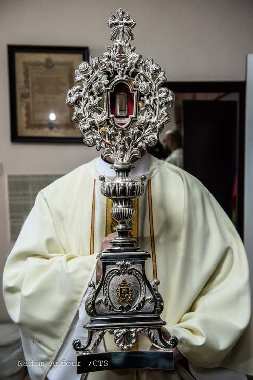 По прибытии в Иерусалим святыня была выставлена в часовне Богоматери Мира в комплексе Нотр-Дам, где утром была отслужена месса, после которой паломники смогли поклониться возвращенной реликвии. Богослужение возглавил ватиканский дипломат в Израиле, на Кипре и в Палестине архиепископ Леопольдо Джирелли и кустод Святой Земли священник Франческо Паттон.