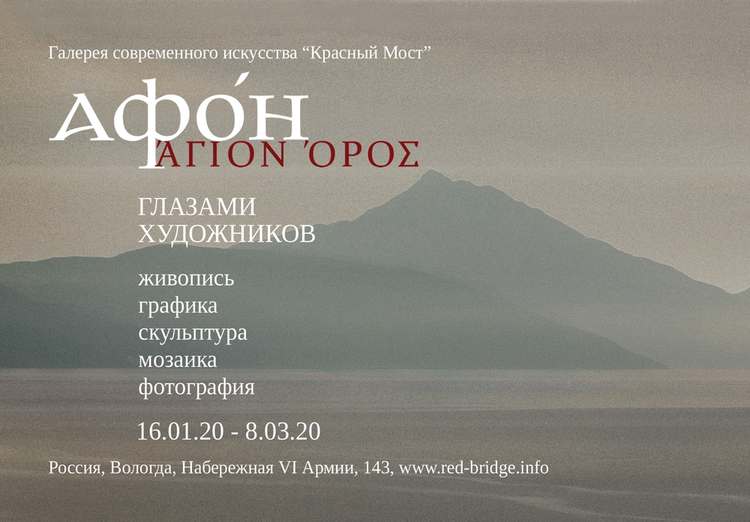 В вологодской галерее современного искусства «Красный мост» с 16 января будет представлена экспозиция, в которую вошли произведения московских авторов (заслуженных художников, академиков и рядовых членов Московского союза художников, участвовавших в групповых поездках на Афон в 2014–2016 годах, сообщает пресс-служба галереи в социальной сети ВКонтакте. Работы выполнены как во время пленэра, так и после, уже в мастерских, на основе собранного материала. Несколько произведений предоставлены афонскими монахами.