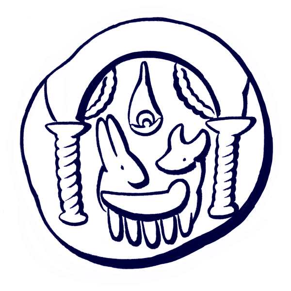 An ancient token once held by a Christian pilgrim in the 6th or 7th century, depicting baby Jesus watched over by a bull and donkey, in the Church of the Nativity, drawing by Michael Smelansky (Courtesy Israel Museum)